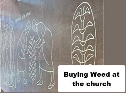 The last pictures are those of images on the church floor that I thought had funny connotations - yes, I know it's not weed and yes, I no the person isn't spanking. Just like I know that the church is not called Saggy.