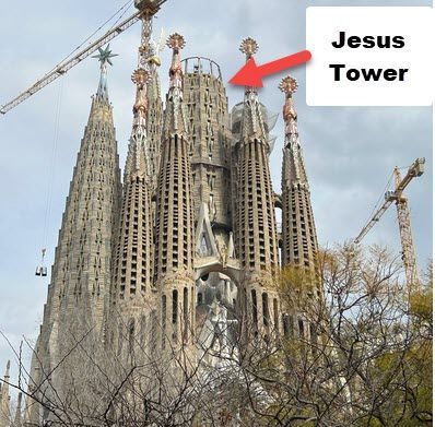 Saggy is still being built. They started in 1882. Gaudi imagined 14 towers - 12 for the apostles, one for the Virgin Mary, and one for Jesus. The Jesus tower, the big one in the middle, will be topped by a cross. Mary's is the one topped by the star.