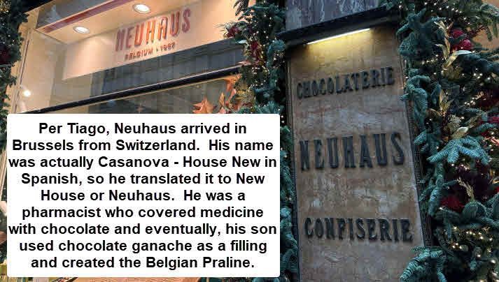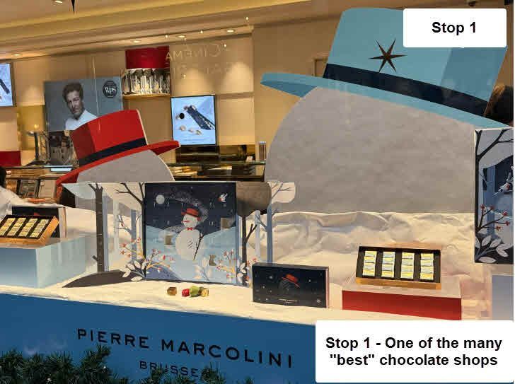 I went on one of the best Walking and Tasting tours EVER with guide Tiago. (I try to go on food tours in every city I visit - the best tours teach you history as well as feed you). Of course he showed us the best places and our first stop was a chocolate shop. There are so many superlative chocolate shops here. He recommended some because you could only get their products in Brussels, but others sell in the States for less, for example Godiva.