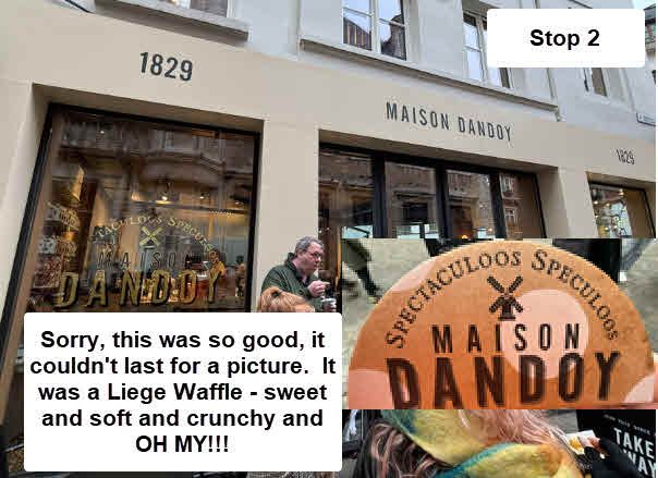 Our second stop was for a waffle or Belgium Fries. Since I already had Belgium fries twice while here, I chose a waffle. Apparently it was a Liege waffle which is sweet and man, was it ever good!