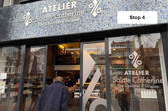 We then went to the second best chocolate shop - Sainte Catherine. The best, per the site world-ratings.com, is Witammer, which we did NOT visit. Why? And now I'm leaving (it's Monday night and my train is at 7:30 AM, so no way I can visit it - oh well, next time).