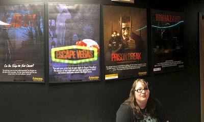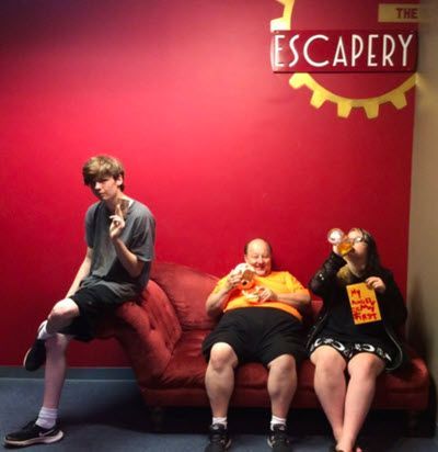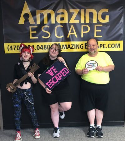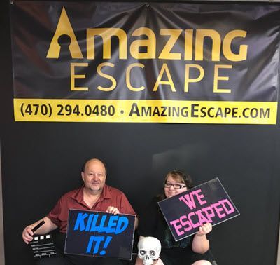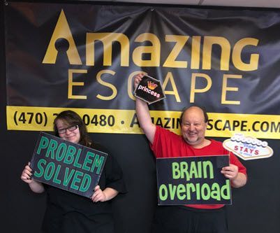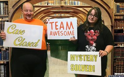 We were quite amazed at how bad this room was. First of all, it's in a mall, so rule 1 - never go to an Escape Venue in a mall. The ceilings were open and the folks in other rooms could be heard. This place prided itself that it changed rooms every 6 months and it wasn't surprising why. The books behind us in the picture are wallpaper. The whole place seemed shabby and amateur. There were lots of red herrings and the some puzzles were silly.