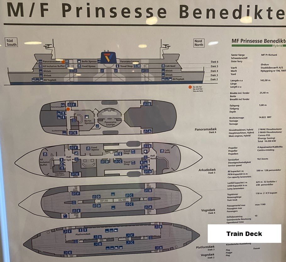The trip by rail from Hamburg includes a ferry crossing. 3 or 4 cars of the train go into the bowels of the ferry and passengers are told to get out. The luggage stays behind and the train is locked up.