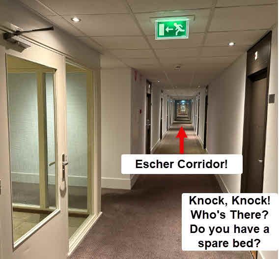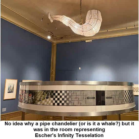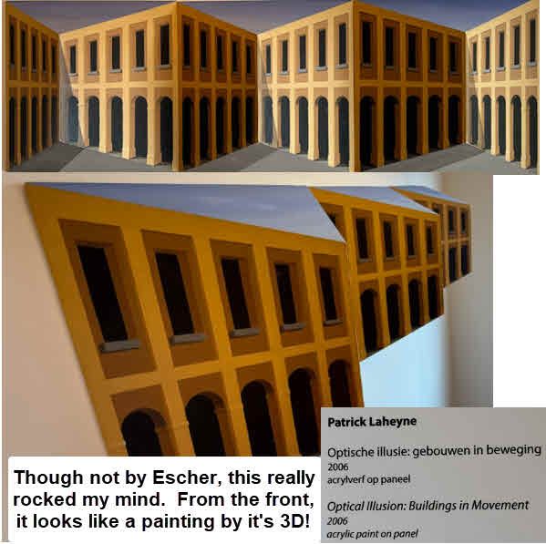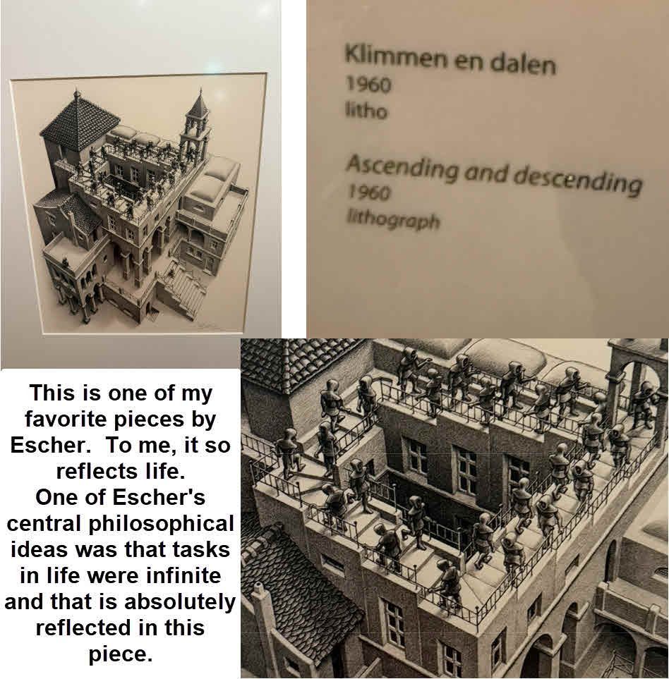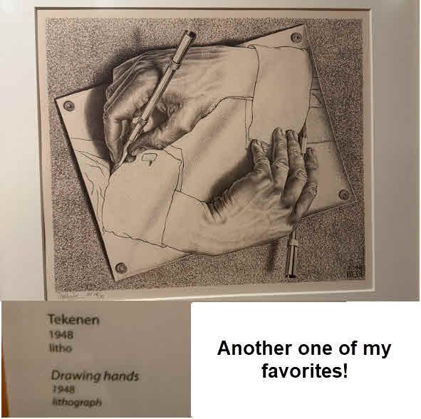 Had a nice slow morning: breakfast, packed up, hit the road around 11:30. An hour later I was in The Hague at the Escher in The Palace exhibit and it was incredible. Mind-bending art everywhere. Like stairs going nowhere and hands drawing hands. Escher was all about Infinity and Eternity. His work was prodigious. I did get bored, because art is not my thing, but this museum was worth going to.