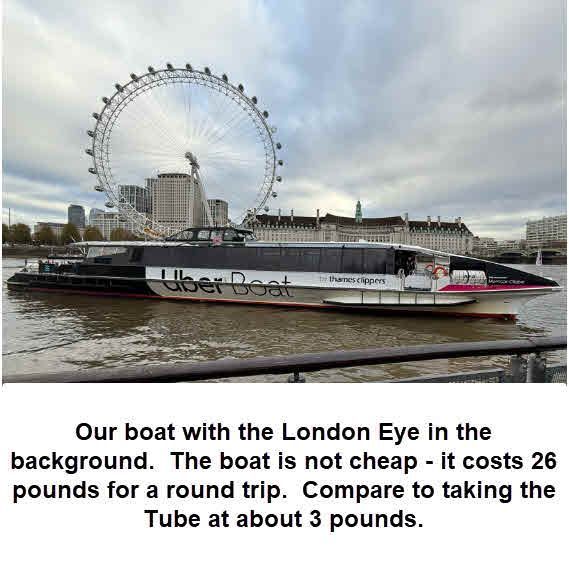 We took the Uber boat up the Thames instead of the Tube and it's a great way to see the sites. We walked up the hill to the Greenwich (pronounced Grin-itch) Observatory which is in Greenwich Royal Park. There are 7 Royal Parks in London. 21% of London is green which makes it officially a forest. I found substantiation here - https://www.timeout.com/london/things-to-do/did-you-know-that-london-is-the-worlds-largest-urban-forest