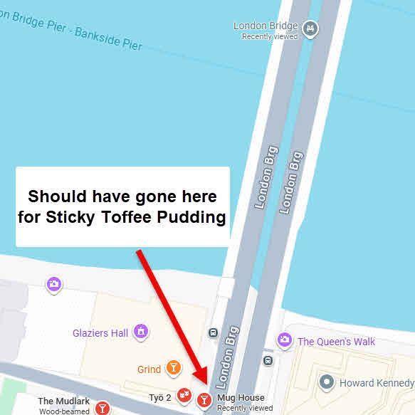 Afterwards, I wanted Sticky Toffee Pudding and decided to go to Gordon Ramsey's restaurant at the Savoy Grill. Nothing on the menu there interested me so I stopped at Honest Burger and had their regular burger first. Then I spent 30 quid on a dessert. To tell you the truth, the one at the Mug House Pub under the London Bridge was better. So that will be on my next trip.