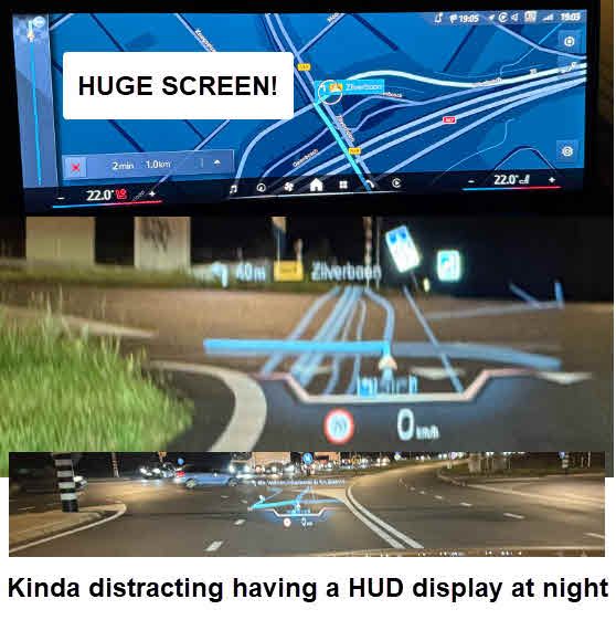 A little more about the car - it is a BMW X3 30e. It has a HUD of the navigation and the speed. I took a pic while stopped, though I was tempted to take a pic while exceeding the speed limit because it beeps at me when I go over.