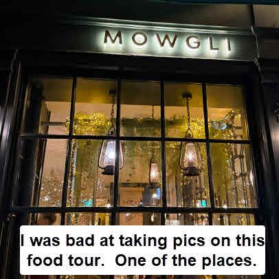 After Nigel dropped me off near my hotel, I took the Sherpa food tour. We had a number of stops but I had to leave early to get to the play I had booked. Timing wasn't great.