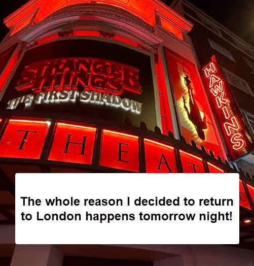 Finally finished at the Phoenix Theatre with Stranger Things: First Shadow. I had hoped the front row balcony would be better, but they are very tight and uncomfortable seats. There's also a rail going across which does interrupt the view. However, the play so awesome even for the third time. I saw things I didn't see the first 2 times. I'm ready to see it again!